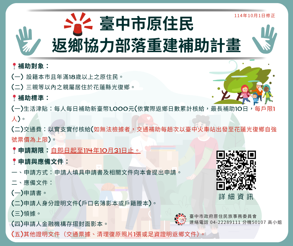 - 【重要訊息】臺中市原住民返鄉協力部落重建補助計畫