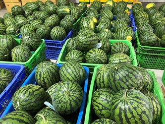 農業局表示,台中西瓜栽培面積430公頃,主要種植在大甲溪、大安溪、大肚溪旁河川砂地,產區在龍井、大肚、清水等地,栽培品種以小玉、金蘭、新蘭西瓜為主,因甜度高、肉質纖細、汁多可口,深受消費者喜愛。近期因疫情因素,嚴重影響農產品行銷通路,市府積極拓展多元通路,這次更獲企業支持,由中龍鋼鐵公司與龍井區農會合作認購西瓜。
