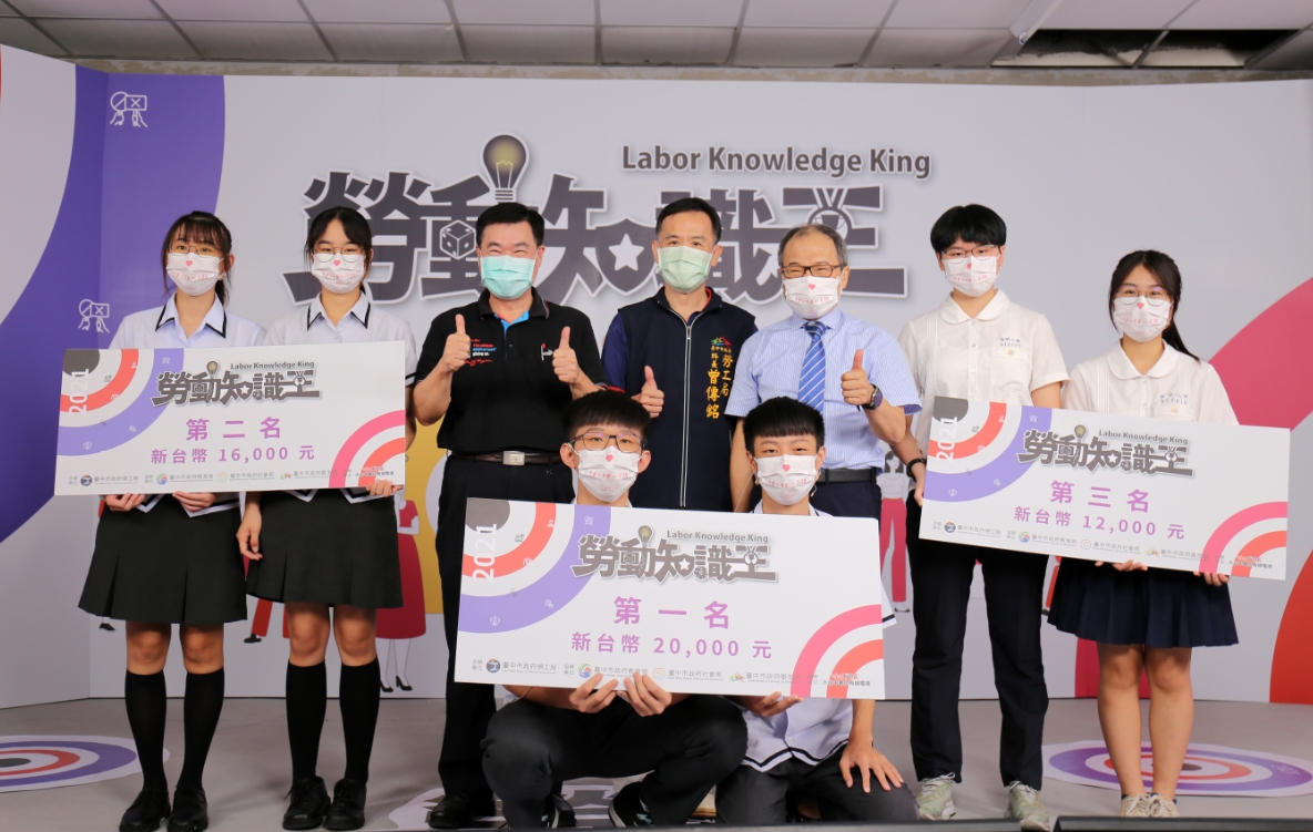 推動勞動法令知識向下扎根,台中市政府勞工局舉辦「勞動知識王」競賽活動,由國中組32隊、高中組22隊、大專暨工(公)會及公務機關組36隊參賽,經過激烈競賽,成績出爐,各組冠、亞及季軍各可獲得2萬元、1萬6千元及1萬2千元獎金。參賽者表示,學習勞動知識對於未來在求職及職場上很有幫助,會更加重視自身的勞動權益。