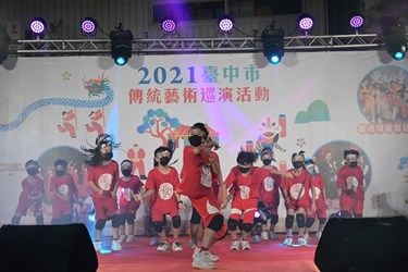 「2021台中市傳統藝術巡演活動」共規劃5場,第4場昨日在后里慈厚宮團隊匯演,由在地優質團隊靈魂頑童舞蹈團帶來活力十足的街舞、流行舞蹈,還有天籟般嗓音的女主唱領軍、全方位表演風格,深受觀眾喜愛的王牌樂團及由迷火佛拉明哥舞坊帶來熱情的踢踏踩西班牙佛朗明哥舞蹈。