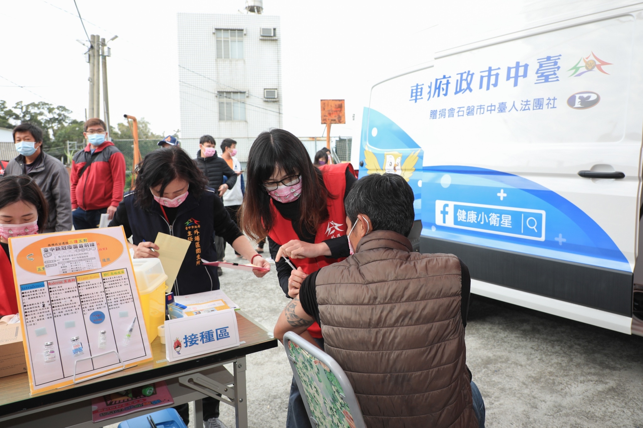 台中磐石會集結企業力量,捐贈配有疫苗儲放專用冰箱的行動防疫車予台中市政府,行動防疫車內部不僅可做到阻絕採檢者與被採檢者之間的飛沫噴濺風險,配置的冰箱更設置不斷電系統,可在不外接電源的情況下維持冷藏溫度8小時,作為疫苗儲放使用。今(2)日行動防疫車首航送健康到外埔區福龍宮,提供民眾揪團接種服務,副市長陳子敬到場見證並感謝磐石會愛心。