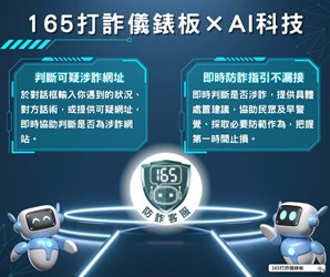 為因應詐騙手法快速演變,內政部警政署於「165打詐儀錶板」導入AI智能客服小幫手,整合防詐資料庫提供即時互動諮詢,可依民眾描述情境辨識詐騙風險並提供具體處置建議;另具備涉詐網址即時查詢功能,可判斷網站是否具詐騙風險。 協助宣導推廣本項服務,共同強化全民防詐安全網。