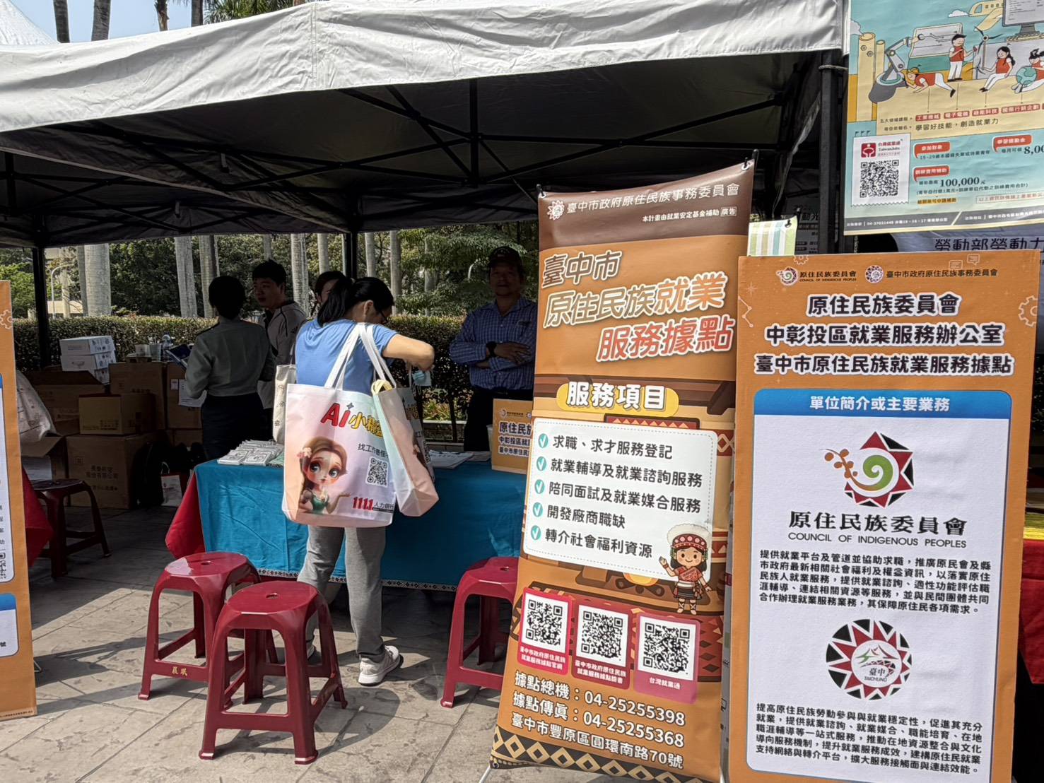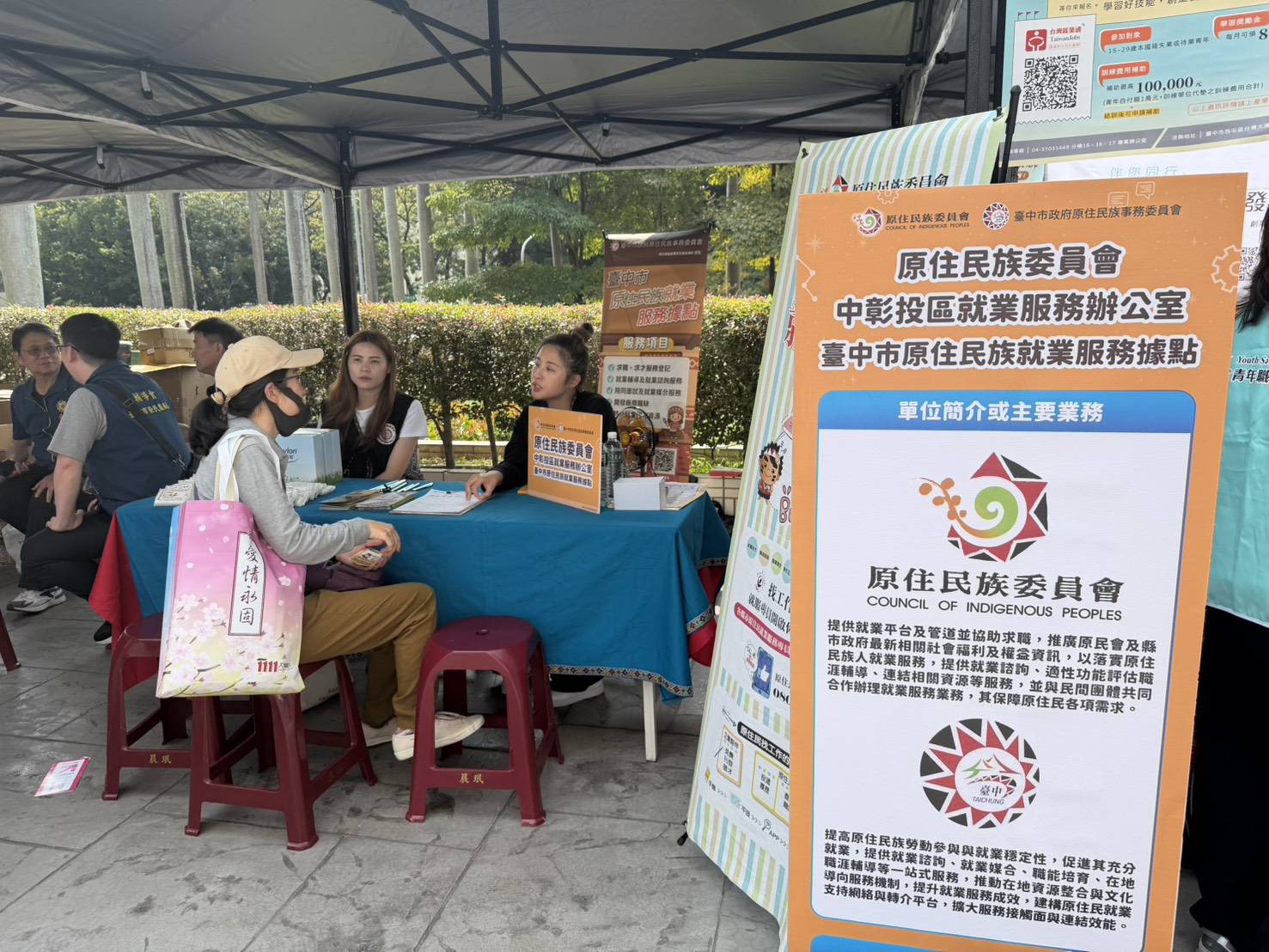 本會的原住民族就業服務員也在現場設攤,很開心見到許多族人來諮詢、洽詢及登記,一起為未來的發展做許多的分享。